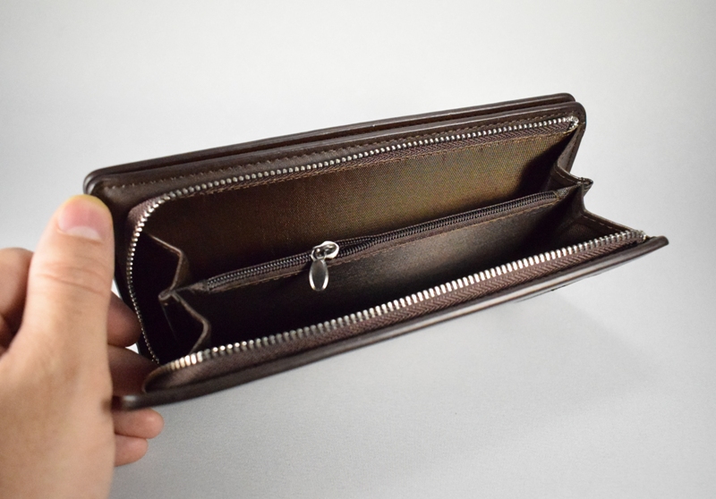 Чоловічий гаманець LONG ZIPPER2 має окреме відділення на кнопках для карток. Відділення на блискавці, всередині якого знаходяться два відділення для банкнот і одне для монет. Привертає увагу зовнішня обробка гаманця. Срібляста зовнішня застібка не тільки елемент декору, але і функціональна деталь. Під застібкою знаходиться ще одне відділення.