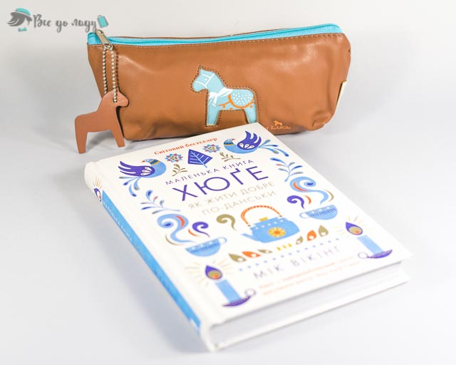 До комплекту входить книга "Маленька книга хюґе. Як жити добре по-данськи" і пенал-косметичка "Good Luck".