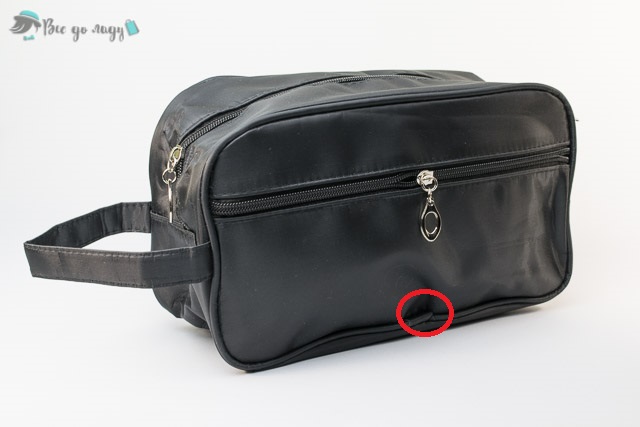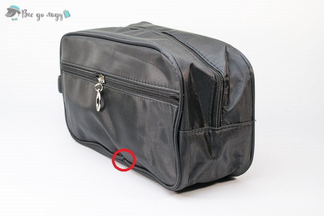 УЦІНКА! Трохи нерівний шов спереду в нижній частині, на фото це місце відмічене червоним. У всьому іншому - добротна косметичка для поїздок і зберігання косметики та інших невеликих за розміром речей.