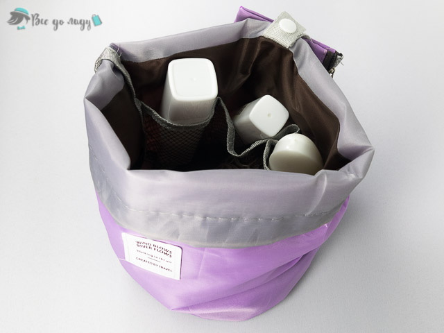 Косметичкою зручно користуватися не тільки в дорозі, але й вдома. У відкритому вигляді ви отримуєте повний доступ до її вмісту. Просто затягнули шнурок зверху й косметичку вже можна брати з собою в дорогу, залишається тільки покласти її до валізи. Повернулися додому - достали й поставили на своє місце.