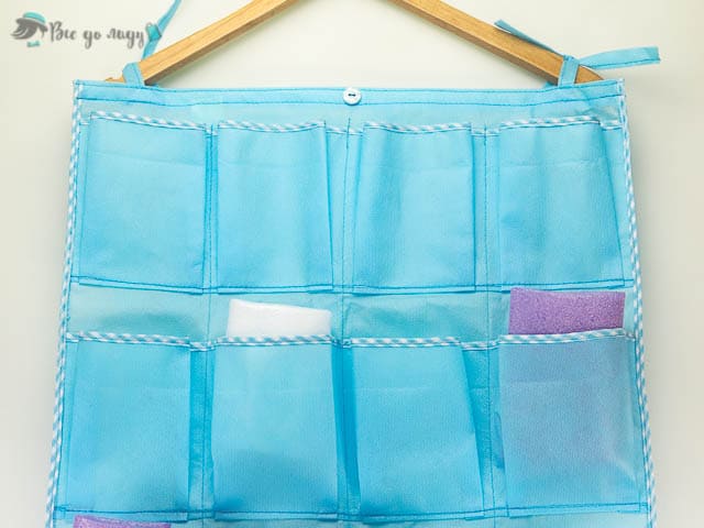 Органайзер можна прив'язати до вішалки, гачків, до будь-якої горизонтальної планки.