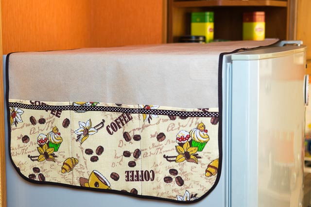 Універсальна та проста у використанні накидка на холодильник "Кавовий десерт". Запобігає потраплянню пилу. З двох сторін має по 3 кишеньки для зберігання дрібних предметів.