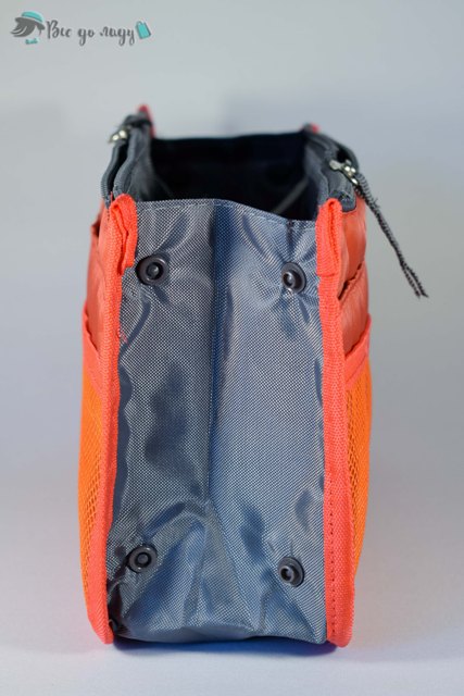 За допомогою кнопок, які знаходяться з боків, можна зменшувати / розширювати обсяг органайзера. Має невеликі ручки для перенесення. Підійде для використання на кожен день, для відряджень або подорожей.