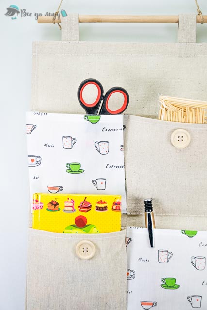 В кишеньках можна зберігати невеликі предмети, такі як: мобільні телефони, ключі, окуляри, косметику, ножиці й т.і. Завдяки симпатичному візерунку тканини, це не тільки органайзер для зберігання дрібниць, але й прикраса для вашої кімнати, кухні, дачі.