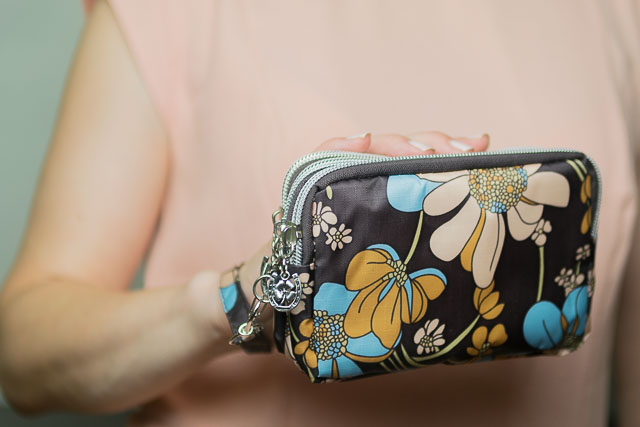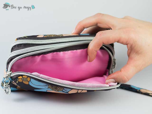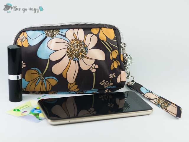 Клатч гаманець має 3 відділення на блискавці, є невелика ручка, щоб носити на зап'ясті. В нього помістяться: мобільний телефон, банківський картки, монети, блиск для губ, ключі та інші дрібниці.
